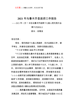 公文堂——海量公文资料,关注立即下载2021年清原满族自治县人民政府工作报告——2020年12月28日在清原满族自治县第七届人民代表大会第四次会议上县委常委、县政府分管日常工作的副县长:李富光各位代表:我受县长吴振宇同志委托,代表县人民政府向大会报告工作,请予审议,并请政协委员、其他列席同志提出意见。一、“十三五”时期主要成就及2020年重点工作过去的五年,既是我县压力巨大、挑战众多的五年,更是砥砺奋进、成果丰硕的五年。在县委坚强领导下,在县人大、县政协监督、支持下,我们认真落实中央、省市工作部署,团结带领干部群众,坚持新发展理念,逐步优化经济结构,主动做实经济数据,不断改善民生事业,经济社会...