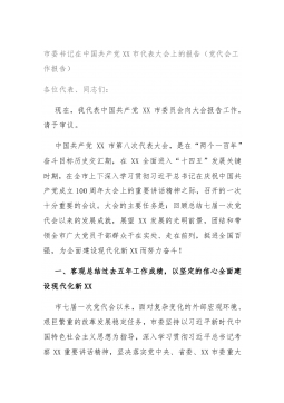 市委书记在中国共产党XX市代表大会上的报告(党代会工作报告)