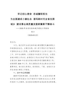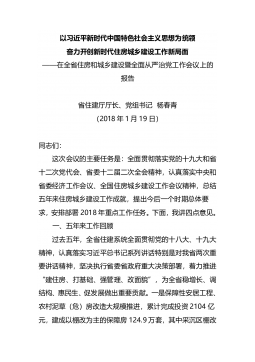 聚焦决胜全面小康加快补齐民生短板努力推进全省住房城乡建设高质量发展省住房城乡建设厅党组书记、厅长吴浩(2019年1月21日)同志们:这次会议的主要任务是,学习贯彻习近平新时代中国特色社会主义思想和党的十九大、十九届二中、三中全会精神,认真落实中央经济工作会议、全国住房城乡建设工作会议、省委十届八次全会和省十三届人大二次会议精神,总结2018年工作,分析形势,安排部署2019年工作。刚才,大会宣读了表彰全省住房城乡建设系统先进集体和先进工作者的决定,6个单位作了很好的发言,大会还印发了书面材料,供大家学习借鉴。下面,我讲四点意见。一、充分肯定2018年全省住房城乡建设工作取得的成绩2018年,在...