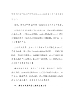 市委书记在中国共产党市代表大会上的报告(党代会报告)
