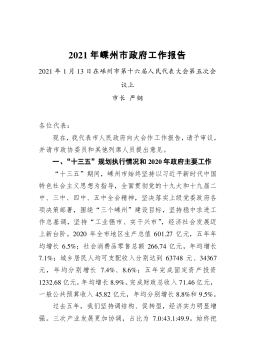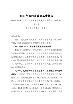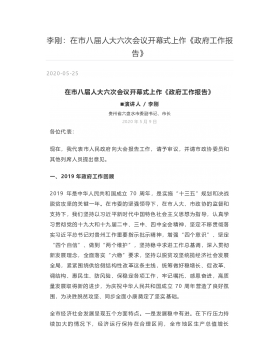 李刚:在市八届人大六次会议开幕式上作《政府工作报告》2020-05-25在市八届人大六次会议开幕式上作《政府工作报告》■演讲人/李刚贵州省六盘水市委副书记、市长2020年5月9日各位代表:现在,我代表市人民政府向大会报告工作,请予审议,并请市政协委员和其他列席人员提出意见。一、2019年政府工作回顾2019年是中华人民共和国成立70周年,是实施“十三五”规划和决战脱贫攻坚的关键一年。在市委的坚强领导下,在市人大、市政协的监督和支持下,我们坚持以习近平新时代中国特色社会主义思想为指导,认真学习贯彻党的十九大和十九届二中、三中、四中全会精神,坚定不移贯彻落实习近平总书记对贵州工作重要指示批示精神,...