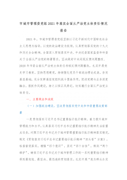 市城市管理委党组2021年落实全面从严治党主体责任情况报告