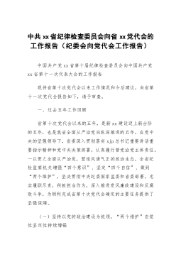 中共xx省纪律检查委员会向省xx党代会的工作报告(纪委会向党代会工作报告)