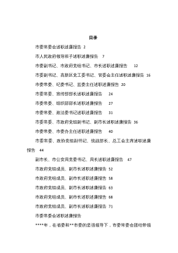 目录市委常委会述职述廉报告2市人民政府领导班子述职述廉报告7市委副书记、市政府党组书记、市长述职述廉报告12市委副书记、高新区党工委书记、管委会主任述职述廉报告16市委常委、纪委书记、监委主任述职述廉报告20市委常委、宣传部部长述职述廉报告24市委常委、组织部部长述职述廉报告27市委常委、政法委书记述职述廉报告31市委常委、市政府党组副书记、副市长述职述廉报告36市委常委、市委办主任述职述廉报告40市委常委、政协党组副书记、统战部长、总工会主席述职述廉报告44副市长、市公安局党委书记、局长述职述廉报告47市政府党组成员、副市长述职述廉报告52市政府党组成员、副市长述职述廉报告58市政府党组成员...