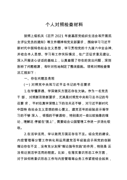 2022年“迎盛会、铸忠诚、强担当、创业绩”主题教育专题组织生活对照检查材料(个人)根据党委《关于开好2022年“迎盛会、铸忠诚、强担当、创业绩”主题教育专题组织生活会通知的要求》,党支部班子集体认真学习了习近平总书记在党的全会和庆祝中国共产党成立100周年大会、《中国共产党党章》和各项规章制度以及《党章》《关于新形势下党内政治生活的若干准则》《中国共产党党内监督条例》。聚焦思想、学习、工作、生活等四个方面。从思想、学习、纪律和作风上查找和分析自身存在的问题,并提出整顿措施。现将个人对照检查材料如下:一、查摆出的突出问题(一)思想方面。很多时候不能以身作则,没有做到不仅在学习上、工作上要有优异...