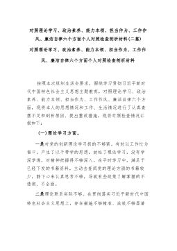 对照理论学习、政治素养、能力本领、担当作为、工作作风、廉洁自律六个方面个人对照检查剖析材料(二篇)