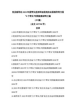 (29篇)党员领导在2023年度带头坚持和加强党的全面领导等方面“6个带头”对照检查材料汇编(全文107746字)范文