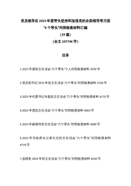 (29篇)党员领导在2023年度带头坚持和加强党的全面领导等方面“6个带头”对照检查材料汇编(全文107746字)