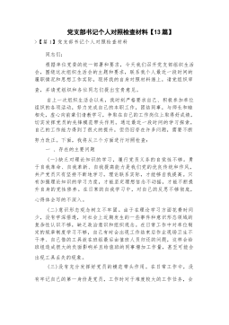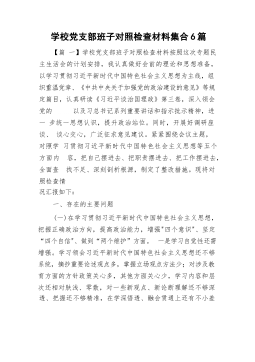 学校党支部班子对照检查材料集合6篇【篇一】学校党支部班子对照检查材料按照这次专题民主生活会的计划安排,我认真做好会前的理论和思想准备,以学习贯彻习近平新时代中国特色社会主义思想为主线,组织重温党章、《中共中央关于加强党的政治建设的意见》等规定篇目,认真研读《习近平谈治国理政》第三卷,深入领会党的以及习总书记系列重要讲话和指示批示精神,进一步统一思想认识,提升政治站位。同时,开展好调研座谈、谈心交心,广泛征求意见建议。紧紧围绕会议主题,对照学习贯彻习近平新时代中国特色社会主义思想等五个方面内容,把自己摆进去、把职责摆进去、把工作摆进去,全面查找不足、深刻剖析根源,制定了整改措施。现将对照检查情况...
