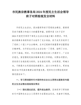 2024年度四个带头民主生活会“带头履行全面从严治党政治责任方面”等四个方面对照检查发言材料四篇(一)带头严守政治纪律和政治规矩,维护党的团结统一方面。(二)带头增强党性、严守纪律、砥砺作风方面。(三)带头在遵规守纪、清正廉洁前提下勇于担责、敢于创新方面。(四)带头履行全面从严治党政治责任方面。目录2024年度民主生活会“四个带头”对照检查发言材料12024年民主生活会“四个带头”对照检查材料82024年民主生活会“四个带头”对照检查材料142024年民主生活会“四个带头”对照检查材料222024“”年度民主生活会四个带头对照检查发言材料根据市纪委、市委组织部关于召开2024年度民主生活会的通...