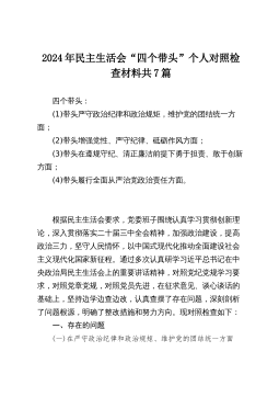 2024年度四个带头民主SH会“带头履行全面从严治党政治责任方面”等四个方面个人对照检查发言材料四篇