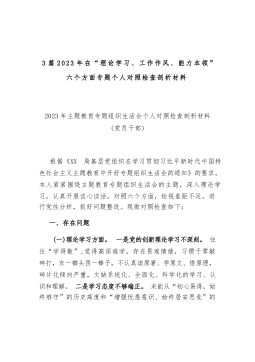 3篇2023年在“理论学习、工作作风、能力本领”六个方面专题个人对照检查剖析材料