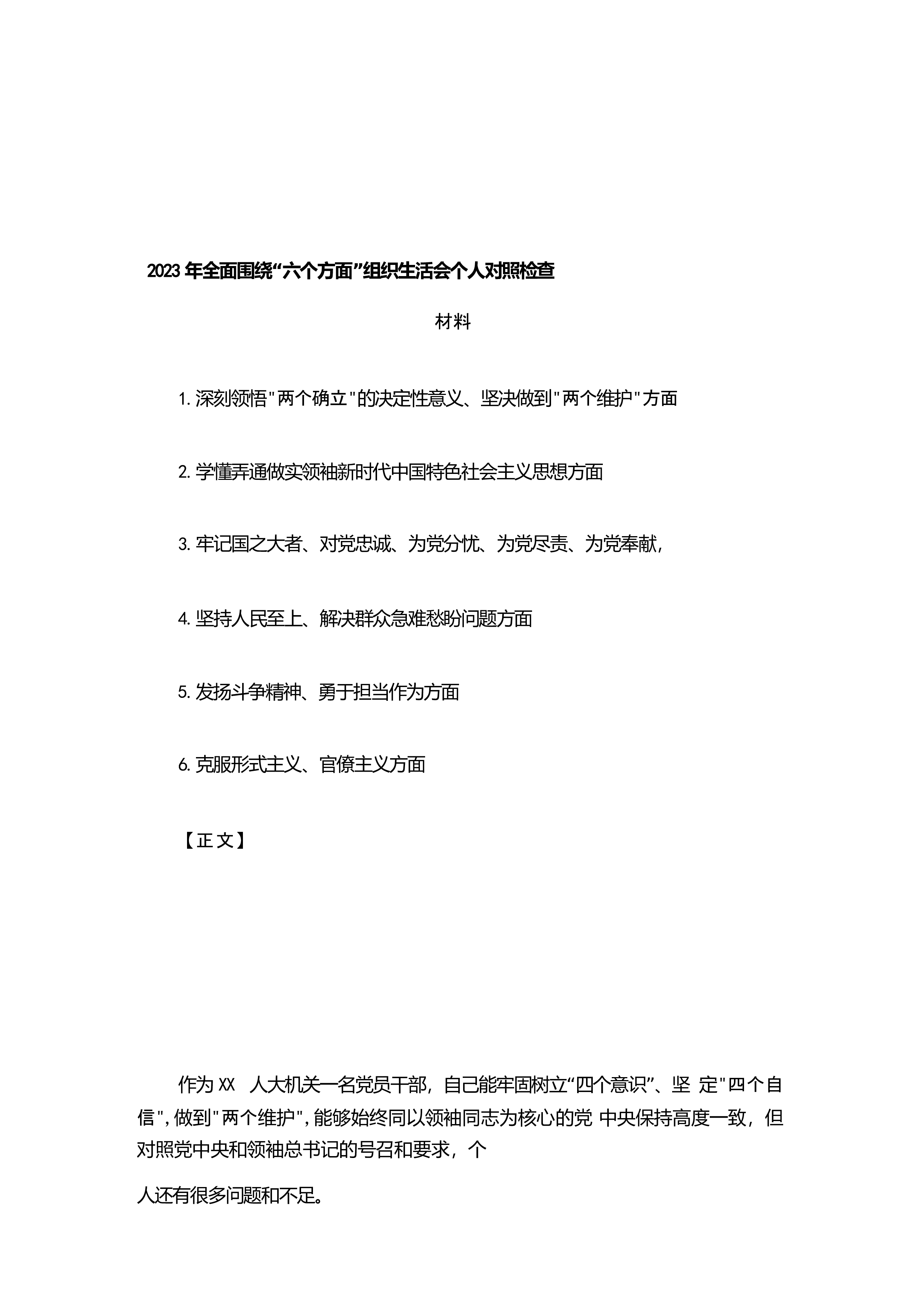 2023年全面围绕“六个方面”组织生活会个人对照检查材料