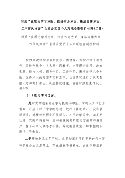 对照“在理论学习方面、担当作为方面、廉洁自律方面、工作作风方面”生活会党员个人对照检查剖析材料(二篇)