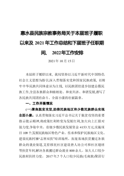 惠水县民族宗教事务局关于本届班子履职以来及2021年工作总结和下届班子任职期间、2022年工作安排