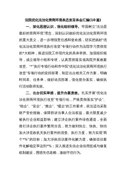 基层法院党组书记、院长在优化法治化营商环境执行攻坚专项行动动员大会上的表态发言汇编(11篇)