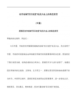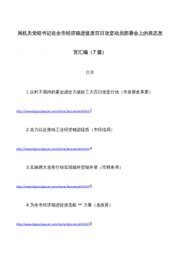 局机关党组书记在全市经济稳进提质百日攻坚动员部署会上的表态发言汇编(7篇)目录1.以时不我待的紧迫感全力做好三大百日攻坚行动(市发展改革委)http://www.biganzijiayuan.com/home/document/6541522.全力以赴推动工业经济稳进提质(市经信局)http://www.biganzijiayuan.com/home/document/6541543.实施两大攻坚行动实现稳外贸稳外资(市商务局)http://www.biganzijiayuan.com/home/document/6541564.为全市经济稳进提质贡献**力量(县政府)http://www.b...
