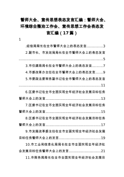 誓师大会、宣传思想表态发言汇编:誓师大会、环境综合整治工作会、宣传思想工作会表态发言汇编(17篇)