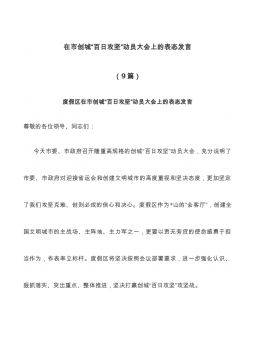 在全市喜迎省运会创建文明城市百日攻坚动员大会上的表态发言材料汇编(10篇)范文