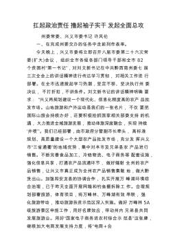 扛起政治责任撸起袖子实干发起全面总攻州委常委、兴义市委书记许风伦一、在完成州委交办的任务中走前列作表率。今天晚上,兴义市委将立即召开八届市委第二十六次常委(扩大)会议,组织全市各级各部门领导干部和全市82个贫困村“第一书记”,对刘文新书记在中共黔西南州委七届三次全会上的讲话精神进行传达学习贯彻,对相关工作进行部署。在全市迅速掀起学习热潮,坚定不移、坚决执行州委决议,不打折扣,不讲条件。刘文新书记的讲话精神明确要求:“兴义再规划建设一个现代化、信息化程度高的农产品批发市场。山地旅游和户外运动是我们的一张名片,不仅要把国际山旅会持续办好,还要积极抢抓国家相关部委支持的机遇,大力推进全域旅游发展,推...