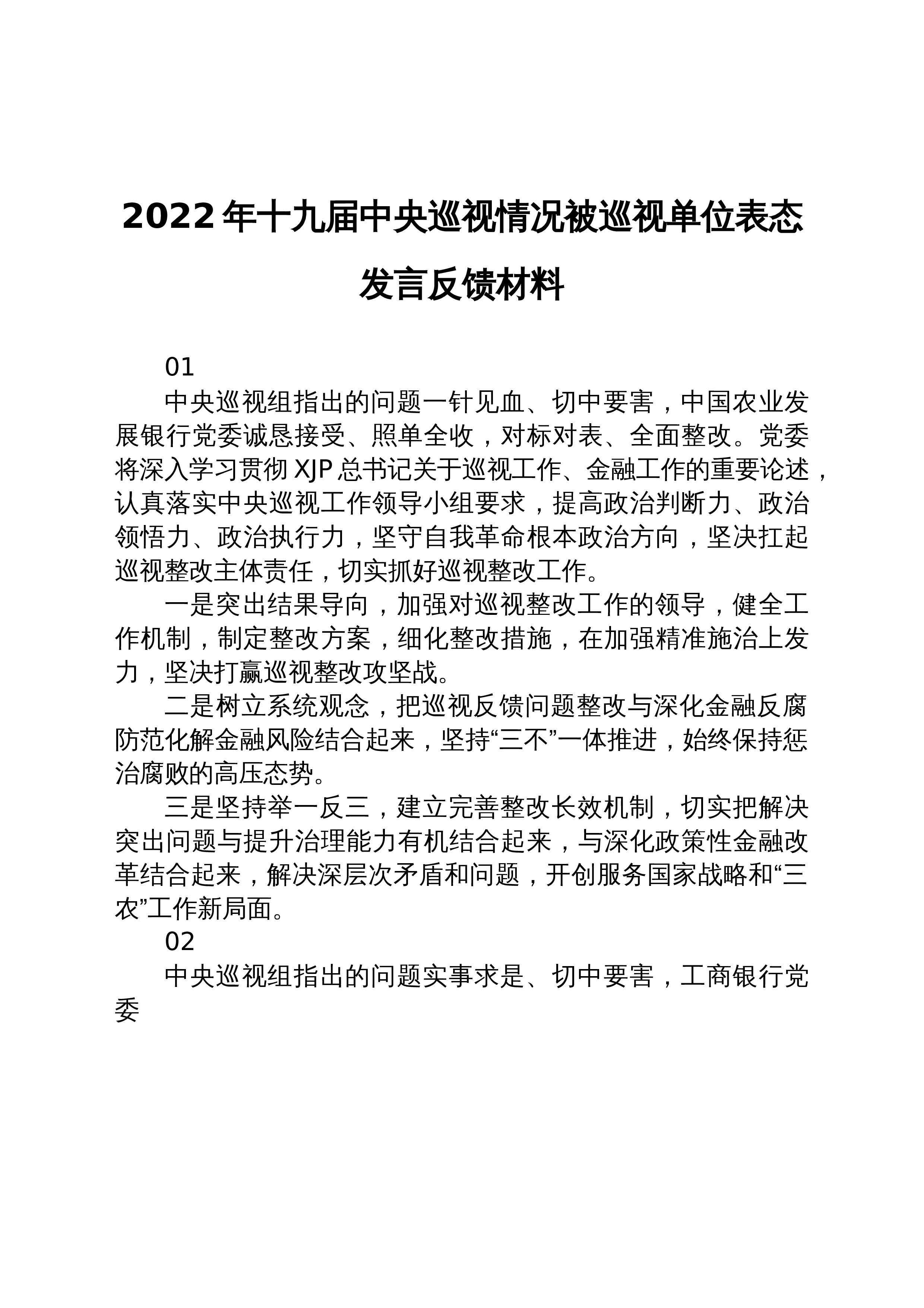 (25篇)2022年十九届中央第八轮巡视情况反馈材料汇编(金融企业、巡察反馈、巡视表态发言)