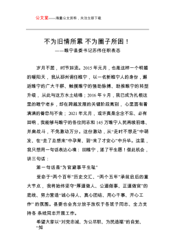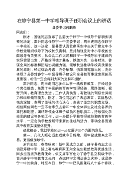 在静宁县第一中学领导班子任职会议上的讲话县委书记何鹏峰同志们:刚才,国强同志宣布了县委关于静宁一中领导干部职务调整的决定,雷升同志任静宁一中党委书记,周串虎同志任静宁一中校长。这一决定,是县委认真贯彻落实中央关于建立中小学校党组织领导下的校长负责制、坚持加强党对中小学校的全面领导有关要求,从全县工作大局和静宁一中领导班子建设的实际需要出发,严格按照德才兼备、以德为先、业务精湛、善谋全局的标准和团结协调能力强、能够长远推动学校高质量发展的原则,经过综合考虑、充分酝酿、慎重研究做出的,充分体现了县委对静宁一中领导班子建设和全县教育事业发展的高度重视,相信一定会得到大家的支持和拥护。雷升同志、周串虎...