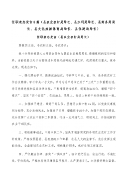 (5篇)任职表态发言(县农业农村局局长、县水利局局长、县商务局局长、县文化旅游体育局局长、县住建局局长)