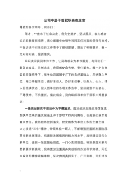 任职表态发言5篇(县农业农村局局长、县水利局局长、县商务局局长、县文化旅游体育局局长、县住建局局长)任职表态发言(县农业农村局局长)尊敬的主任、各位副主任,各位委员:我十分荣幸被县人大常委会任命为县农业农村局局长,感谢组织的信任和培养。当前我县正处于全面推进乡村振兴战略的关键之际,我深感责任重大,使命光荣。现表态如下:一、强化理论学习、提高政治站位。不断学习中央、省、市、县各级农村工作会议精神,学习中央一号文件,学习习近平总书记关于“三农”工作重要论述,学习党章党规和各类法律法规。不断增强党性修养,提高政治站位,增强“四个意识”、坚定“四个自信”,在政治上、思想上、行动上和党中央保持高度一致。...