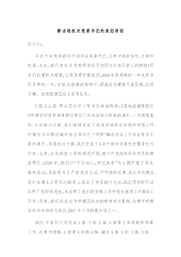赴新领导任职表态发言稿范文尊敬的各位领导、同志们:刚才,XX宣读了上级的命令,我坚决拥护和服从,同时,也衷心感谢组织上对我的信任与重托,感谢上级党委和机关对我的教育培养,感谢XX党委一班人对我关心帮助,感谢全体干部职工对我的信赖支持。对于我的到来,有的同志也许会比较陌生,请允许我做一下自我介绍。XX年XX月,我从XX到XX工作,先后担任XX,直至今年XX月,接到上级命令,来到XX任党委书记一职。从今天开始,确切的说从现在这个时刻开始,我将和同志们一起工作、学习和生活,我很高兴!同时也很感谢上级领导和组织上对我的信任,才有了我和大家并肩在一起朝夕相处的机会。在XX任党委书记的时候,我对咱们单位有...