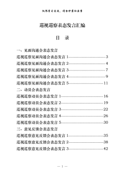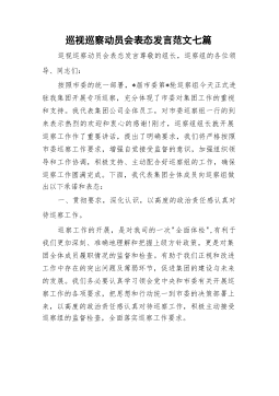 巡视巡察动员会表态发言范文七篇巡视巡察动员会表态发言尊敬的组长,巡察组的各位领导、同志们:按照市委的统一部署,*届市委第*轮巡察组今天正式进驻我集团开展专项巡察,充分体现了市委对集团工作的重视和支持。我代表集团公司全体员工,对市委巡察组一行的到来表示热烈的欢迎和衷心的感谢!刚才,巡察组组长就开展巡察工作作了重要讲话,提出了明确要求,我们将严格按照市委巡察工作要求,增强自觉接受监督的意识,加强组织领导和工作协调,积极支持、主动配合好巡察组的工作,确保巡察工作圆满完成。下面,我代表集团全体成员向巡察组做出以下承诺和表态:一、贯彻要求,深化认识,以高度的政治责任感认真对待巡察工作。巡察工作的开展,是...