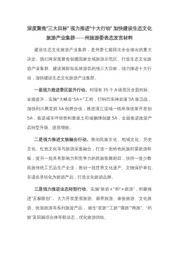 深度聚焦“三大目标” 强力推进“十大行动” 加快建设生态文化旅游产业集群——州旅游委表态发言材料