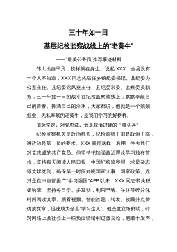 民政局党组书记、局长“五型政府”先进个人先进事迹推荐材料一、聚焦政治过硬,善学善思强化理论武装该同志坚持把政治建设摆在首位,严守党的政治纪律和政治规矩,不断增强“四个意识”、坚定“四个自信”、坚决做到“两个维护”。一是抓住“一个重点”。即把学习贯彻党的十九大和十九届四中、五中、六中全会精神和总书记的系列讲话为重点,把思想认识统一到党的决策部署上来,认真履行职责,切实关注民生。二是加强“两个建设”。即加强支部自身建设和党风廉政建设,充分发挥带头模范作用,筑牢拒腐防变的思想道德防线。三是坚持“三个制度”。即坚持党组中心组学习制度、“三会一课”制度和民主评议党员制度,定期召开党员大会和党小组生活会,...