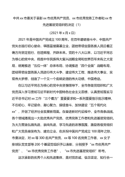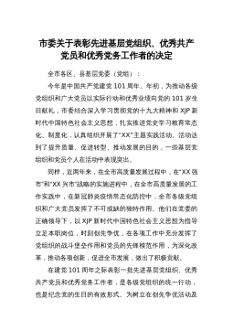 市委关于表彰先进基层党组织、优秀共产党员和优秀党务工作者的决定范文