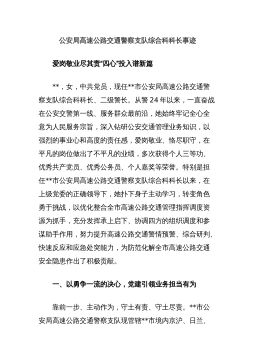 以担当显作为以实干谋实绩——“最美公务员”事迹材料一、基本情况XXXXX,现任XXXX。曾获XXXX。二、主要事迹(一)坚持立德树人,提高政治素养,做为政以德的“明白人”该同志始终把加强学习作为履职尽责的第一需要,自觉向书本学、向实践学、向群众学,做到日积月累、久久为功一是加强政治理论学习。积极参加单位组织的集中领学、撰写心得、考察学习等各类活动,同时利用业余时间自觉开展自学,阅研学习读本、重要讲话、摘编选编等篇目,系统深入学习习近平新时代中国特色社会主义思想和党的XX大精神。二是注重提升业务能力。把提升业务能力作为开展工作的“第一道工序”,围绕中心工作,有针对性地学习履行岗位职责、服务发展大...