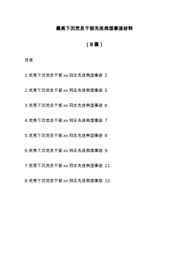 优秀驻村第一书记个人先进事迹材料(4篇)优秀驻村第一书记个人先进事迹材料1我叫XX,中共党员,是三门峡市工商局竞争执法科科长。按照组织的安排,2015年4月份到双龙湾镇X村担任驻村第一书记。X村位于卢氏县西南山区,是省级贫困村。全村辖6个居民组,174户498人。国土面积15平方公里,林地面积12994亩,耕地面积389亩,人均不足1亩。由于历史和自然条件等因素影响,基础设施薄弱,生存环境恶劣,群众生活困苦,聋、哑、呆、智障及残疾多达40人,近78%的村民仍居住在土木结构房屋中,个别人家全年收入不到1000元。目前,该村有贫困户为88户258口人,贫困发生率为49.5%;兜底户13户、33人,...