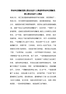 劳动争议调解员爱心责任先进个人事迹和劳动争议调解员爱心责任先进个人事迹