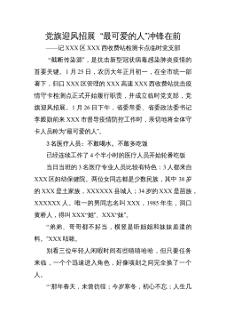 党旗迎风招展“最可爱的人”冲锋在前——记XXX区XXX西收费站检测卡点临时党支部“截断传染源”,是抗击新型冠状病毒感染肺炎疫情的首要关键。1月25日,农历大年正月初一,在全市统一部署下,归口XXX区管理的XXX高速XXX西收费站抗击疫情守卡检测点正式开始履行职责,并成立临时党支部,党旗迎风招展。1月26日下午,省委常委、省委政法委书记李殿勋前来XXX市督导疫情防控工作时,亲切地将全体守卡人员称为“最可爱的人”。3名医疗人员:不敢喝水,不敢多吃饭已经连续工作了4个半小时的医疗人员开始轮番吃饭当日当班的3名医疗专业人员比较有特色:3人都来自XXX区妇幼保健院。两位女同志都是少数民族,其中38岁的X...