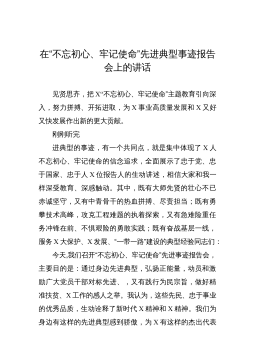 在“不忘初心、牢记使命”先进典型事迹报告会上的讲话见贤思齐,把X“不忘初心、牢记使命”主题教育引向深入,努力拼搏、开拓进取,为X事业高质量发展和X又好又快发展作出新的更大贡献。刚刚听完进典型的事迹,有一个共同点,就是集中体现了X人不忘初心、牢记使命的信念追求,全面展示了忠于党、忠于国家、忠于人X位报告人的生动讲述,相信大家和我一样深受教育、深感触动。其中,既有大师先贤的壮心不已赤诚坚守,又有中青骨干的热血拼搏、尽责担当;既有勇攀技术高峰,攻克工程难题的执着探索,又有急难险重任务冲锋在前、不惧艰险的勇敢实践;既有奋战基层一线,服务X大保护、X发展、“一带一路”建设的典型经验同志们:今天,我们召开...