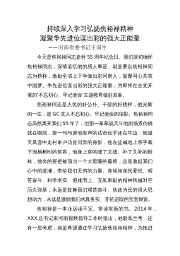 持续深入学习弘扬焦裕禄精神凝聚争先进位谋出彩的强大正能量——河南省委书记王国生今天是焦裕禄同志逝世55周年纪念日。我们深切缅怀焦裕禄同志,深情追忆他的感人事迹,就是要以焦裕禄同志为榜样,激励全省上下争做出彩河南人,凝聚同心共筑中国梦、争先进位谋出彩的强大正能量,为即将在全党开展的“不忘初心、牢记使命”主题教育做好准备。焦裕禄同志是人民的好公仆、干部的好榜样,他光辉的一生,是GC党人不忘初心、牢记使命的缩影。焦裕禄同志虽然离开我们55年了,但那一幕幕战天斗地的场景仿佛就在眼前,那一句句掷地有声的话语似乎还在耳边,他漫天风雪中走村串户访贫问苦的身影,他在盐碱地上亲手栽下泡桐树时的笑容,他身上穿的缝...