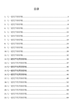 目录1.七一建党节演讲稿...........................................................................................32.七一建党节演讲稿...........................................................................................53.七一建党节演讲稿.......................................................................................