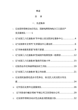 2024年1月先进集体、先进个人事迹材料汇编(38篇)目 录一、先进集体记省科技厅高新技术处党支部:“红色引擎”助力科技创新高质量发展 1城关区检察院第三检察部被最高人民检察院记集体一等功4记“国家卓越工程师”和“国家卓越工程师团队”:坚定科技报国理想书写创新争先篇章 6记全省“人民满意的公务员集体”忻州市行政审批服务管理局:凝心聚力擦亮为民服务底色 10记“全国枫桥式公安派出所”燕山营派出所:守护小镇的“警察蓝”… 13记全国纪检监察系统先进集体西藏自治区纪委监委案件审理室:以“审理之为”守牢案件质量生命线 16二、先进个人记“国家卓越工程师”称号获得者、大连(抚顺)石油化工研究院...