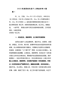 2023民族团结先进个人事迹材料8篇篇1叶,女,汉族,19xx年12月4日出生,本科文化(法律专业),1982年6月参加工作,20xx年6月调民政局工作,20xx年8月担任xx县民族宗教事务局民宗股长至今一直从事民族宗教工作。自担任民族宗教以来,在工作上,兢兢业业,一丝不苟。积极主动学习民宗法规和相关政策,工作态度端正,认真负责地对待每一项工作。一、政治坚定,旗帜鲜明,全力维护民族团结该同志注重个人的品德修养,遵纪守法,讲原则、讲团结、讲稳定,识大体,顾大局。能够时时处处自觉宣传党的民族政策,关心和团结各民族干部群众,牢固树立马克思主义国家观、民族观、宗教观和“三个离不开”思想,在大是大非问题...