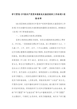 学习贯彻《中国共产党党和国家机关基层组织工作条例》经验材料