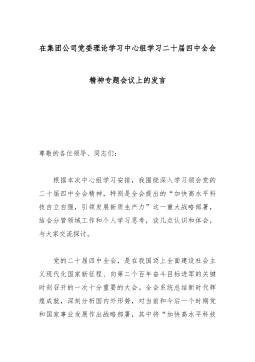 在集团党委理论学习中心组学习二十届四中全会精神专题(扩大)会议上的主持词与总结讲话(集团党委书记、董事长xxx)同志们: 现在开始开会。 根据上级党委部署和集团年度学习计划,今天我们召开党委理论学习中心组专题(扩大)会议,核心任务就是深入学习领会党的二十届四中全会精神,紧密结合我们集团公司的实际,研究谋划贯彻落实的具体路径,切实把全会精神转化为推动集团高质量发展的强大动力和务实成效。 党的二十届四中全会,是在我国进入全面建设社会主义现代化国家新征程的关键时刻召开的一次重要会议。全会系统总结了新时代党和国家事业取得的历史性成就、发生的历史性变革,围绕推进中国式现代化这个最大的政治对全面深化改革、完善国家治理等作出战略部署。这些部署准确把握了新时代新征程党和国家事业发展的新要求、人民群众的...