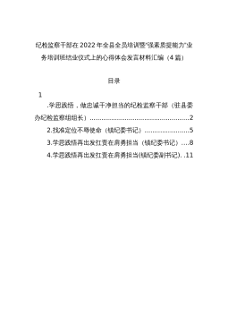 纪检监察干部在2022年全县全员培训暨“强素质提能力”业务培训班结业仪式上的心得体会发言材料(4篇)