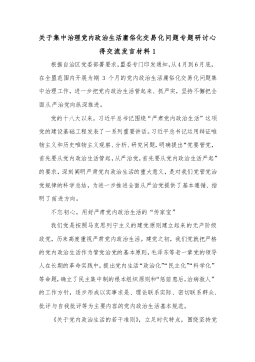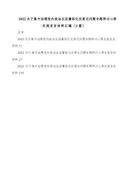 (3篇)2022关于集中治理党内政治生活庸俗化交易化问题专题研讨心得交流发言材料汇编