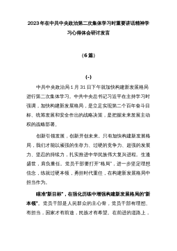 (6篇)学习2023在中共中央政治局第二次集体学习时重要讲话精神心得体会研讨发言.