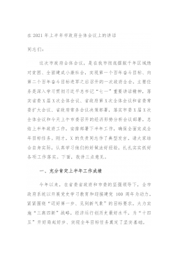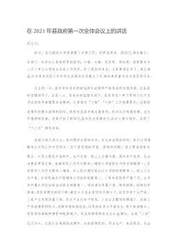 在2021年县政府第一次全体会议上的讲话