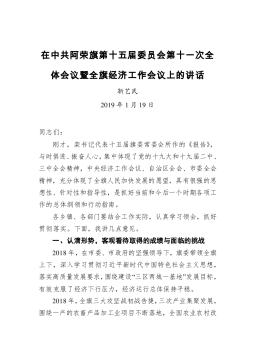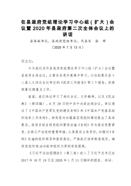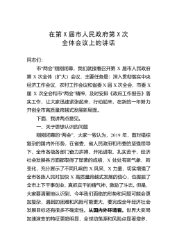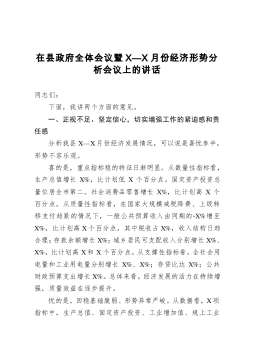 在2021年县政府第一次全体会议上的讲话同志们:刚才,各位副县长安排部署了分管工作,讲得很具体、很到位,请各镇办、各部门、各单位认真抓好贯彻落实;×镇、×镇、发改局、审批局、招商服务中心五个单位分别结合各自工作实际,作了很好的发言,大家要相互学习、相互借鉴,以求真务实的工作作风扎实推进各项重点工作,确保高质量完成年度目标任务。过去的一年,面对突如其来的新冠肺炎疫情和严峻复杂的发展形势,在县委的坚强领导下,在县人大、县政协的监督支持下,县政府深入学习贯彻习近平总书记来陕考察重要讲话精神,认真落实“六稳”“六保”工作部署要求,在取得疫情防控重大战果的同时,脱贫攻坚战夺取全面胜利,经济运行趋稳回暖,...