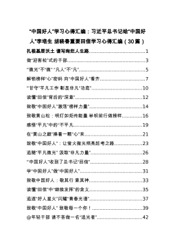 “中国好人”学习心得汇编:习近平总书记给“中国好人”李培生胡晓春重要回信学习心得汇编(30篇)扎根基层沃土谱写绚烂人生路.....................................1做“迎客松”式的干部....................................................3“微光”不“微”“凡人”不“凡”............................................5解锁榜样“心”密码向“中国好人”看齐..............................7“甘守”平凡工作彰显非凡“功底”................
